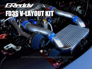 No longer do you need to build a custom set-up for your track or drift FD3S RX7. With the new GReddy V-mount Kit, you get a XL intercooler, XL Aluminum Racing Radiator and all packaged to fit perfectly in the RX7 engine bay. Other key features include: Aluminum I/C and Radiator air ducting, our special elbows for the turbo outlet and new high filtration GReddy Airinx RZ fresh air intakes.